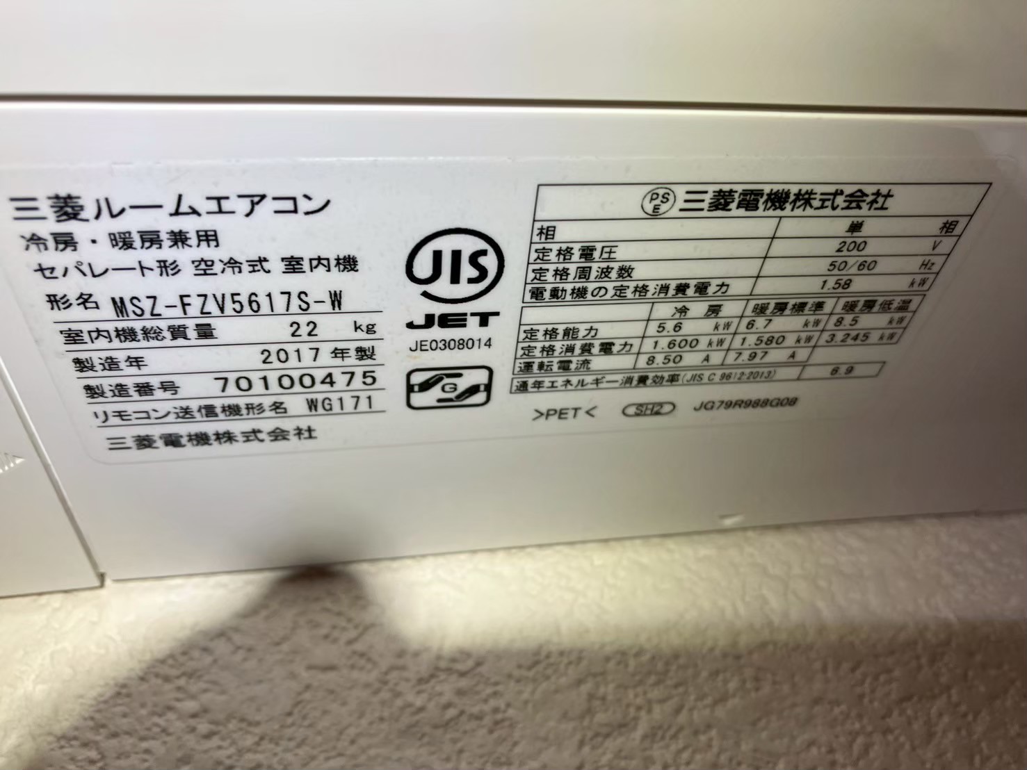 三菱FZシリーズ「霧ヶ峰(MSZ-FZV5617S-W)」のエアコンクリーニングをおこないました