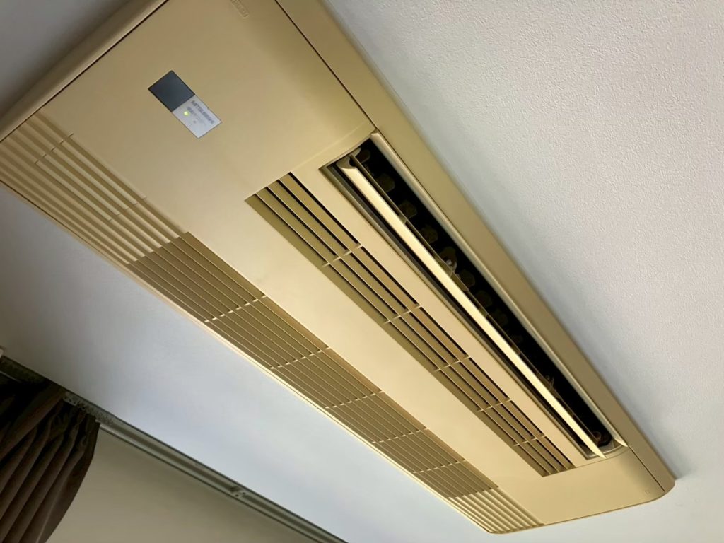 17年間使用した三菱製 天井1方向エアコンのクリーニングをおこないました