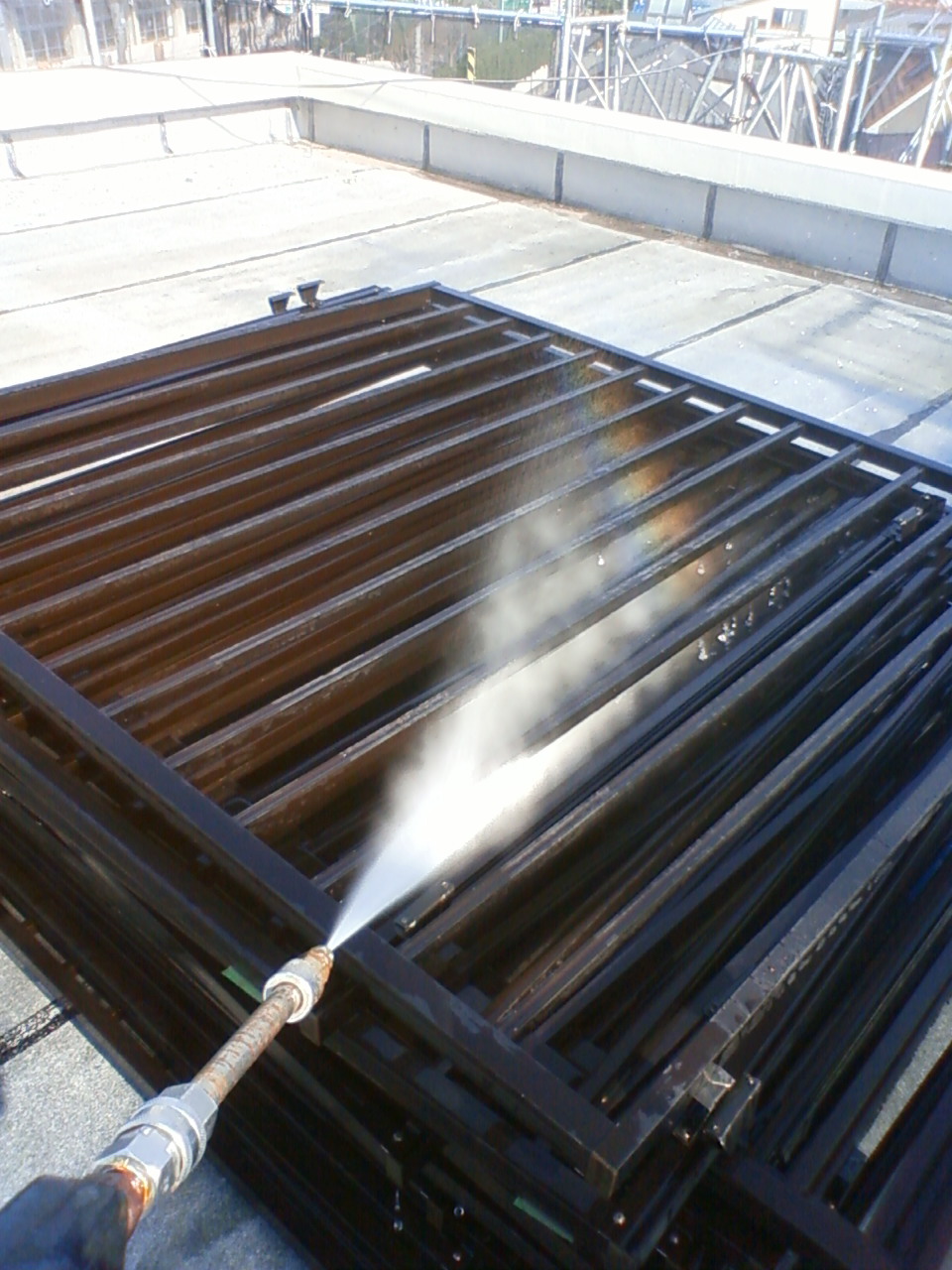 その後、高圧洗浄でゴミ置き場、各部屋の格子を洗いました。