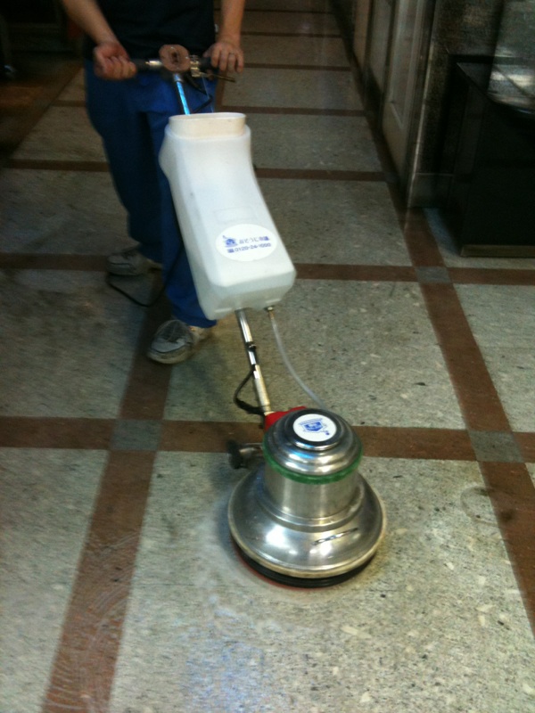 千葉県我孫子市天王台にて、パチンコ屋さんの床洗浄ワックス作業作業。