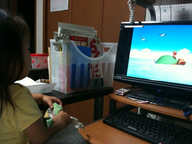 帰宅後、パソコン作業をしようとおもったら、末っ子娘がノンタン(キッズDVD)をみせろとパソコン前を占領(-_-;)