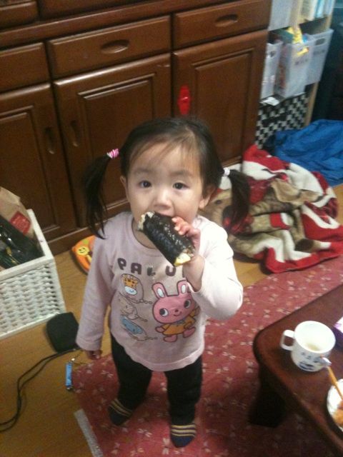 昨日は節分ということで、恵方巻き(えほうまき)を子供たちと一緒にかぶり付きました。