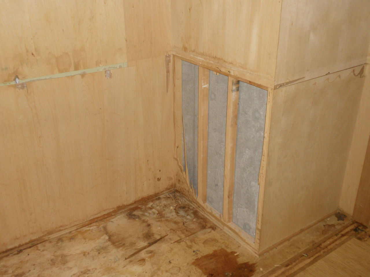 この部分は大きく切り取り、合版(ベニヤ)から取り替えます。