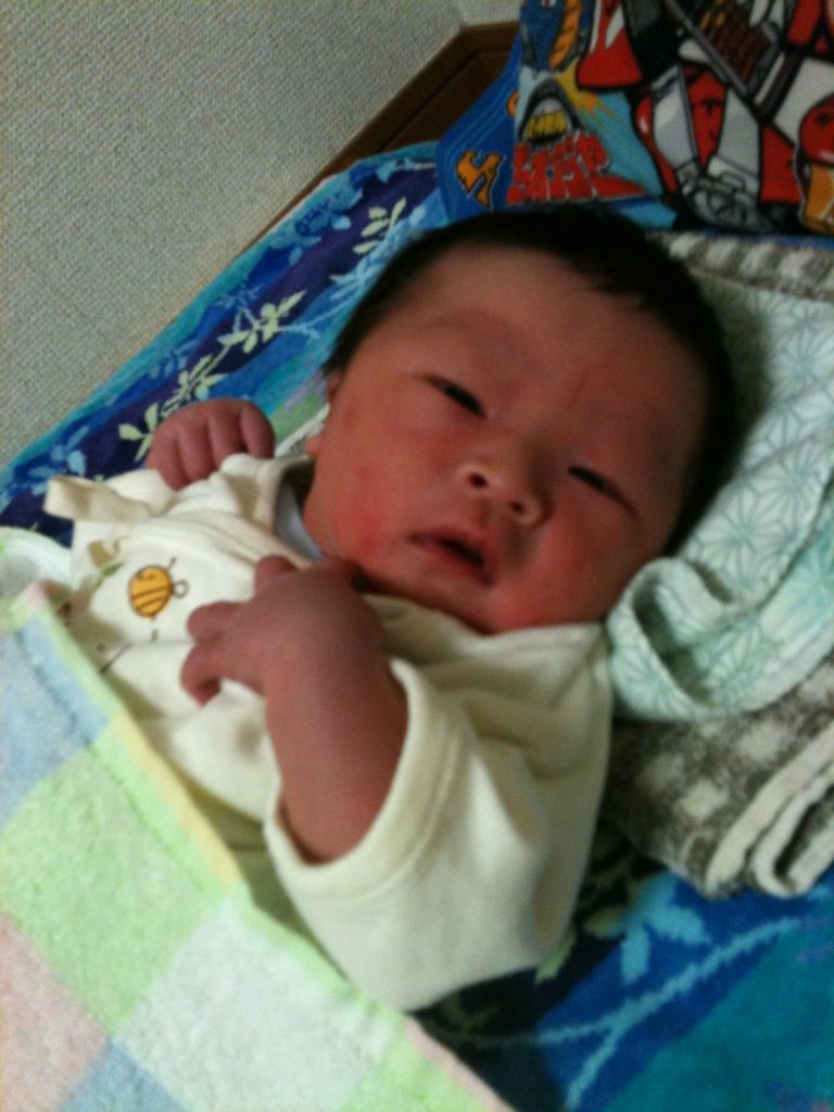 自宅出産なので、人生発の夜は父親と眠ることになりました(^^)