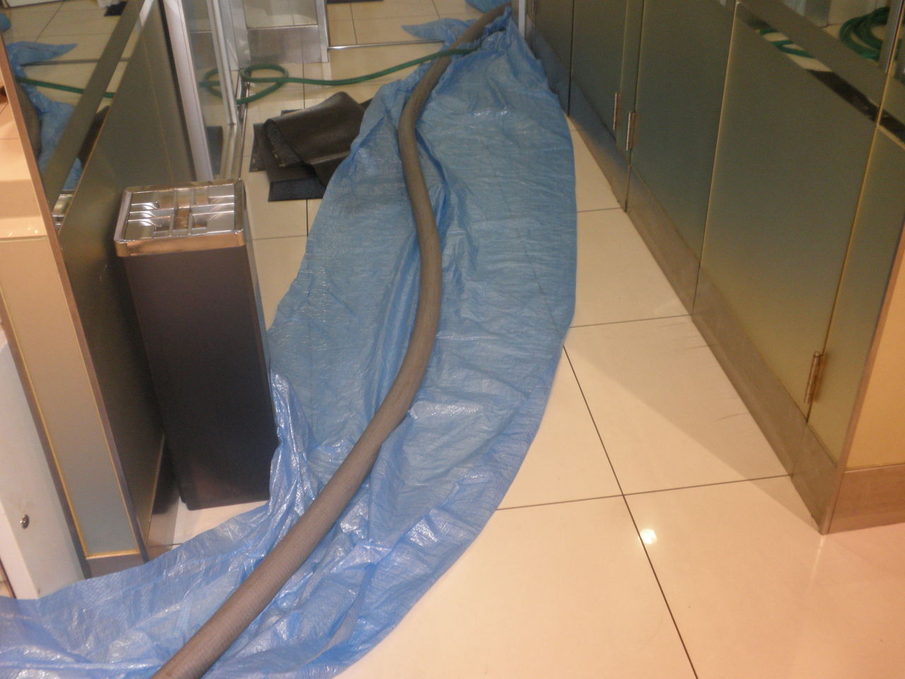 こいつで汚水を吸い上げあます!養生をしっかりして、地下の汚水槽まで引っ張ります。