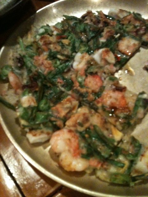 昨夜、会合後、湯島のチョンハットン(韓国料理)で食べた海鮮青唐辛子チヂミ!