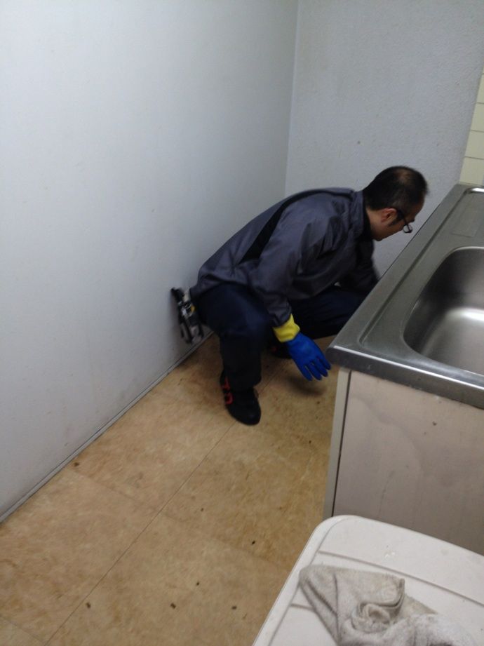 北区田端駅前、学生寮で共有部キッチン、トイレの清掃とゴキブリ防除作業!
