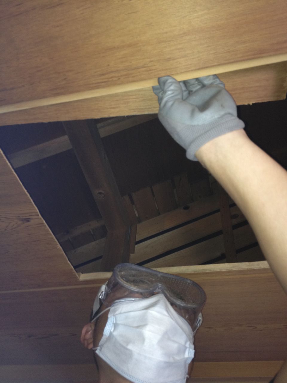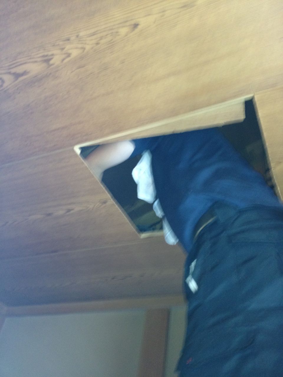 本日は荒川区東尾久で一般住宅天井裏のハクビシン糞尿の殺菌消毒作業!