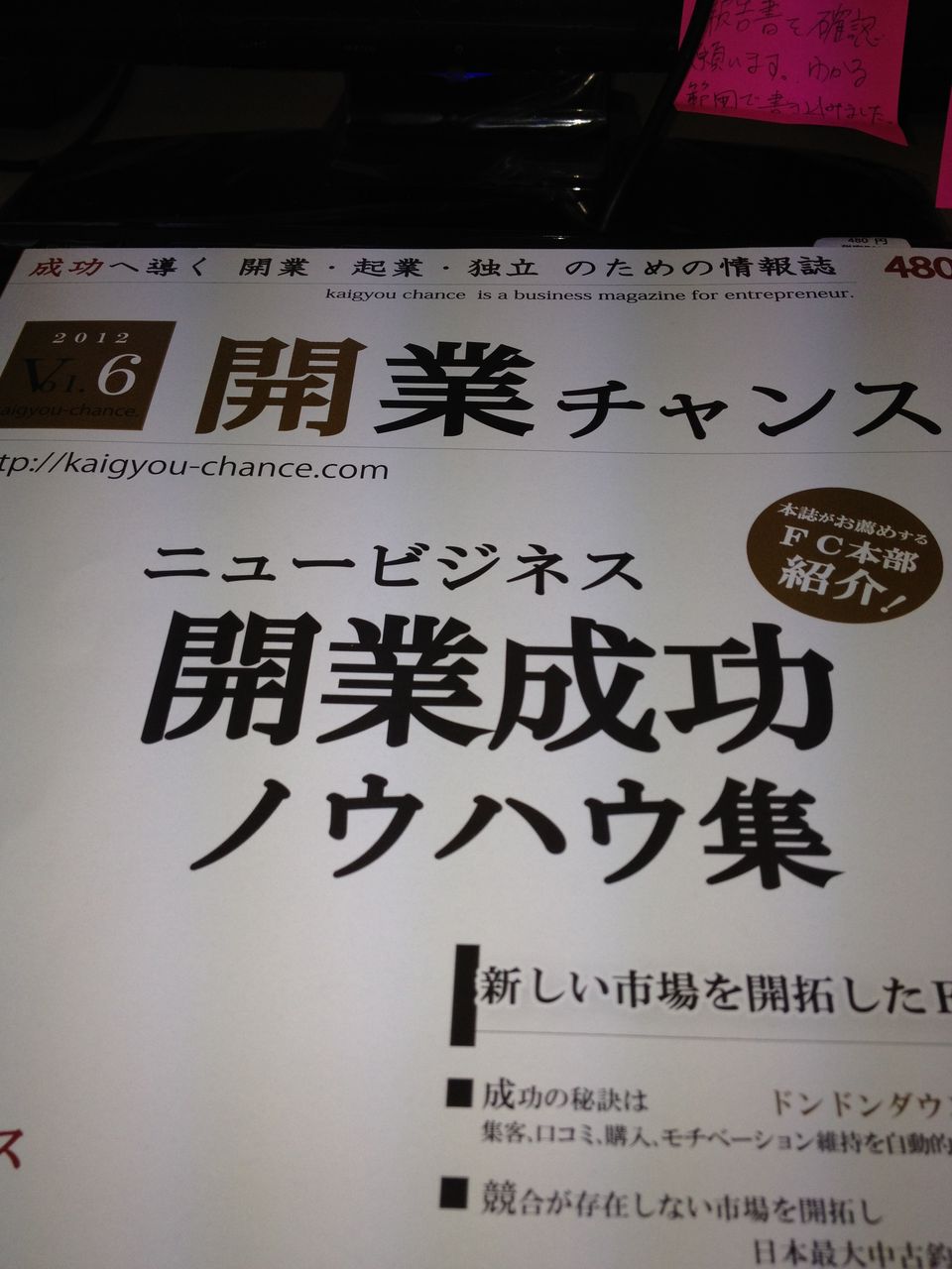 昨夕、「開業チャンス」という情報誌の取材を受けました。