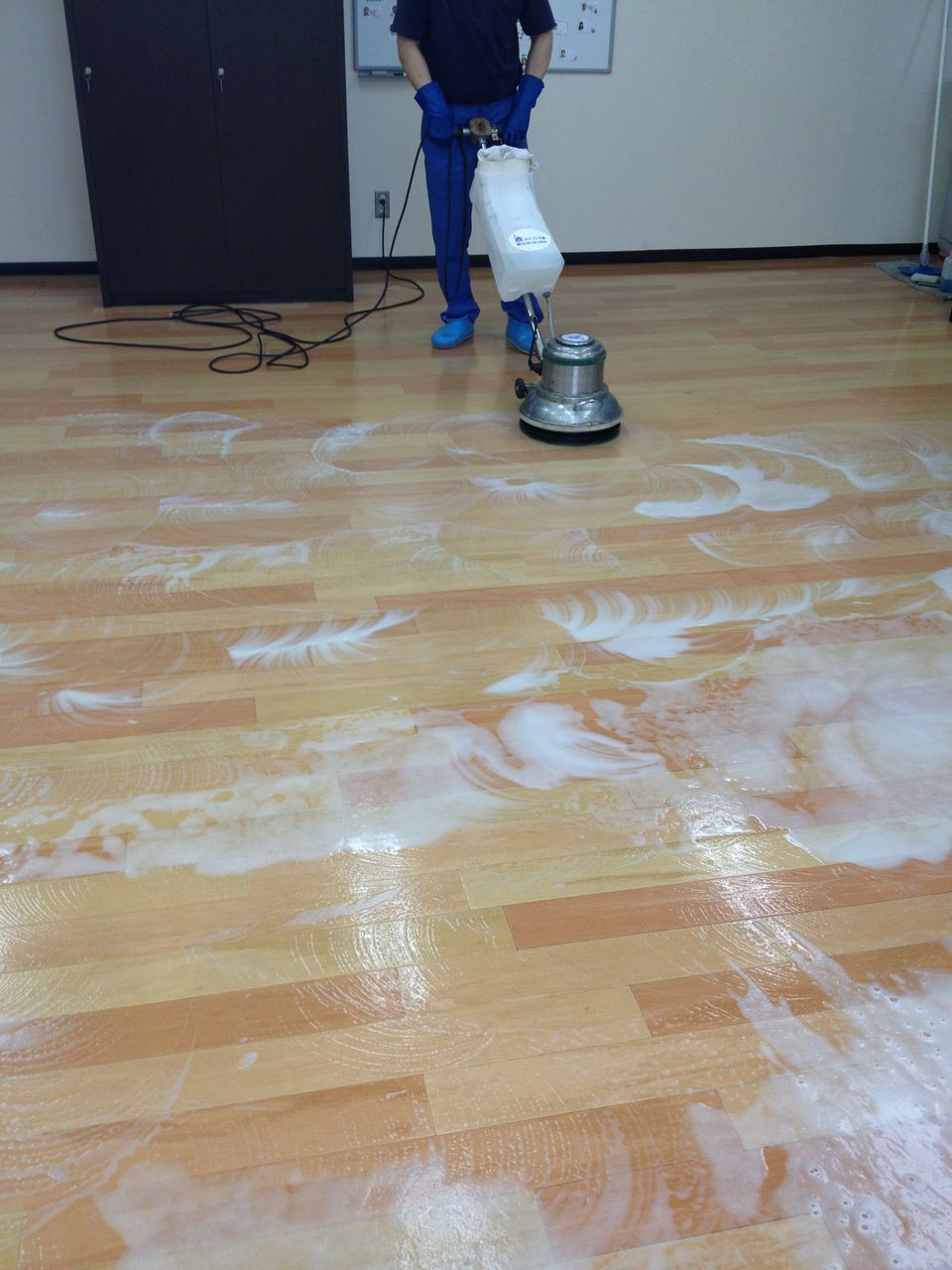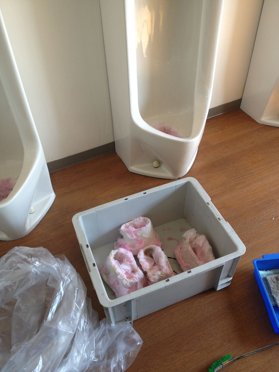 男子トイレの尿石除去や床洗浄ワックス、外壁高圧洗浄などを徹底的に行いました。