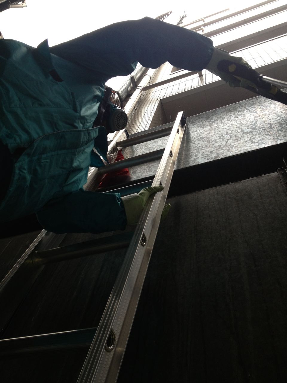 雨の中ご苦労様でした。※写真は3階部分の高所作業になります。