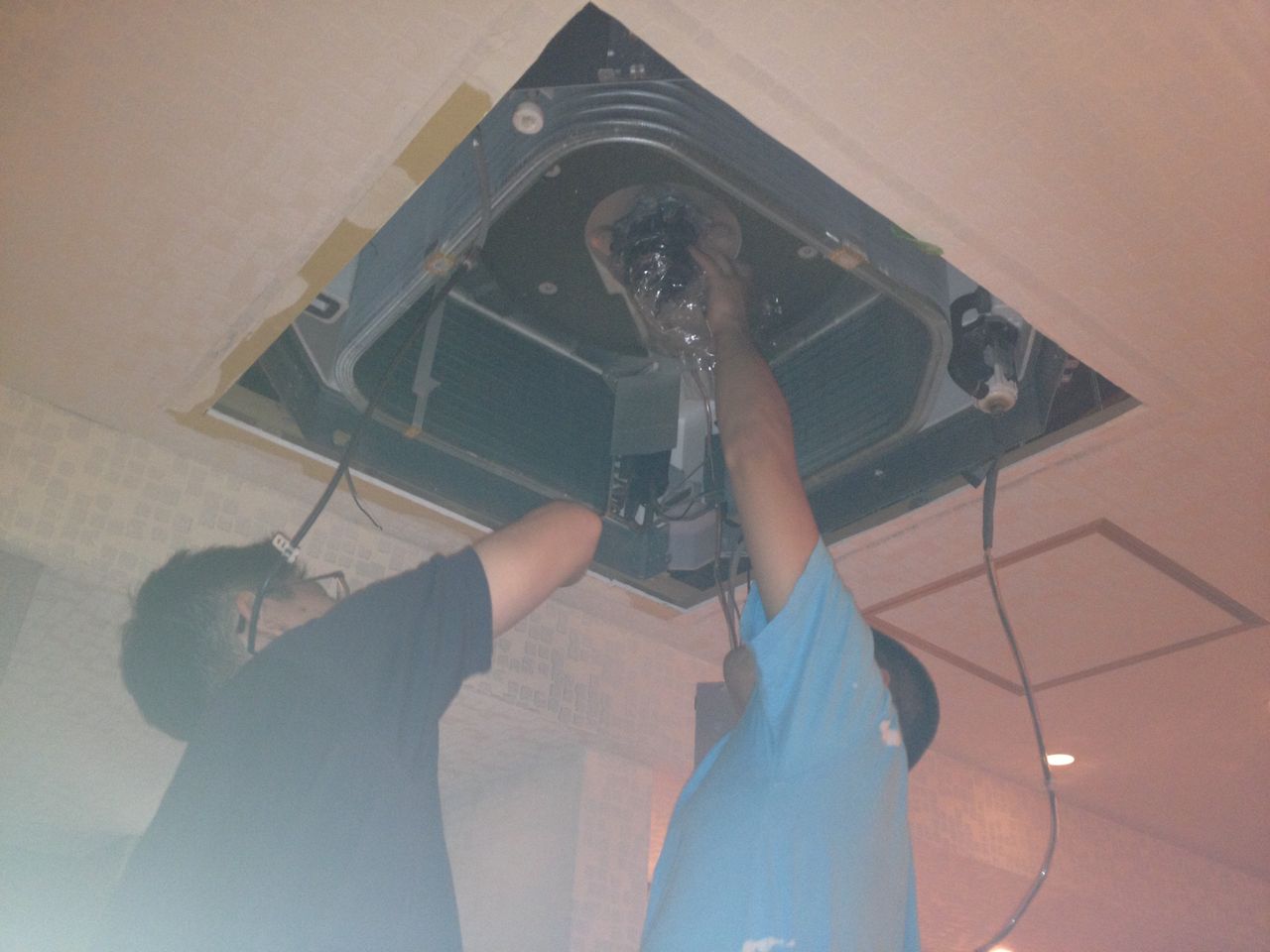 昨夜は、某焼肉屋で8台の業務用エアコンクリーニング&室外機熱交換機高圧洗浄!